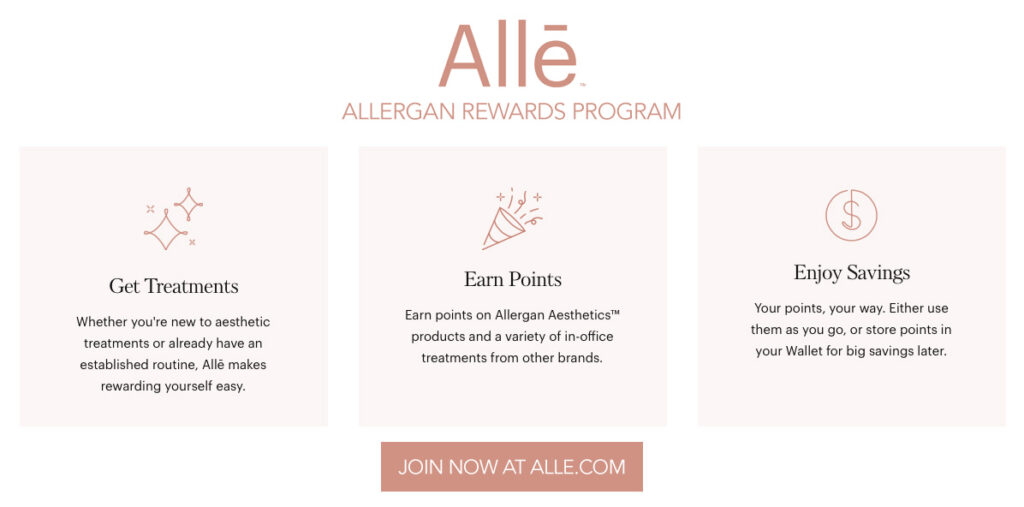 With Allē, you can earn points on a variety of brands, products and treatments with our spa. When you’re ready, you can redeem points for savings on the services you love. You can create your free account on Alle.com or through the Allē app.